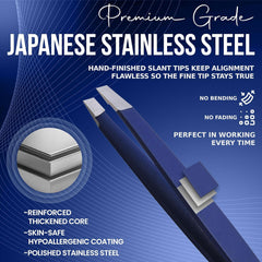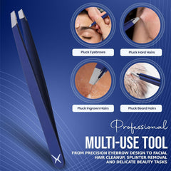 Slanted Stainless Steel Tweezers for Men & Women - Precision Eyebrow Tweezers for Facial Hairs, Strong Grip, Fine Tip, Professional Tweezer for Plucking & Grooming (Midnight Blue)